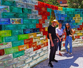 | Brandon, Morgan and Mariana with a glass piece by Pae White on San Giorgio Island |